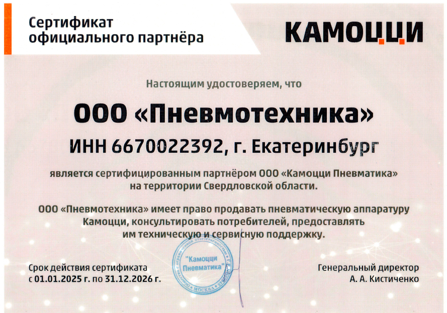 CAMOZZI — признанный итальянский производитель высокоточных пневматических систем и компонентов для автоматизации промышленных процессов. Компания была основана в 1964 году братьями Камоцци в провинции Брешия. Сегодня холдинги CAMOZZI представлены 19 производственными площадками по всему миру, включая Россию, США, Германию и Китай.